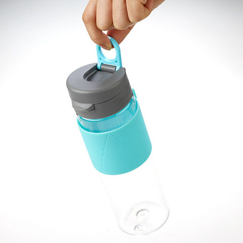 The bottle of 450ml has red and mint color silicone lid and modern and straight body line.